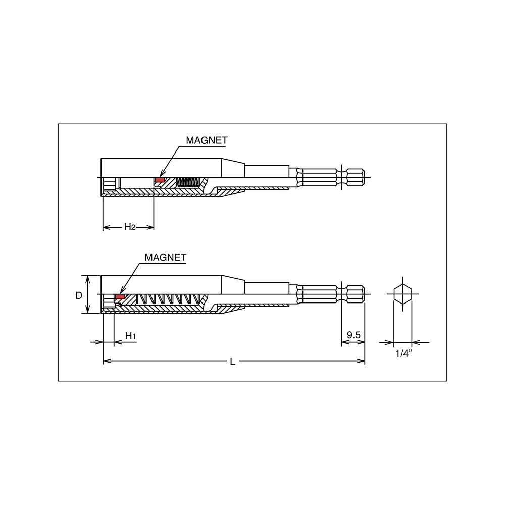 1/4” 6-kant Nutsetter mit versenkbarem Magnet, 100 mm