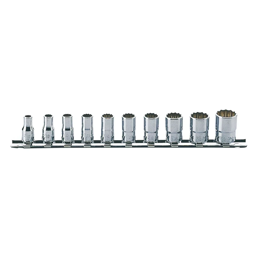 1/4″ 12-kant Nusssatz (Zoll), 10-teiliger Satz auf Halteschiene, AS954