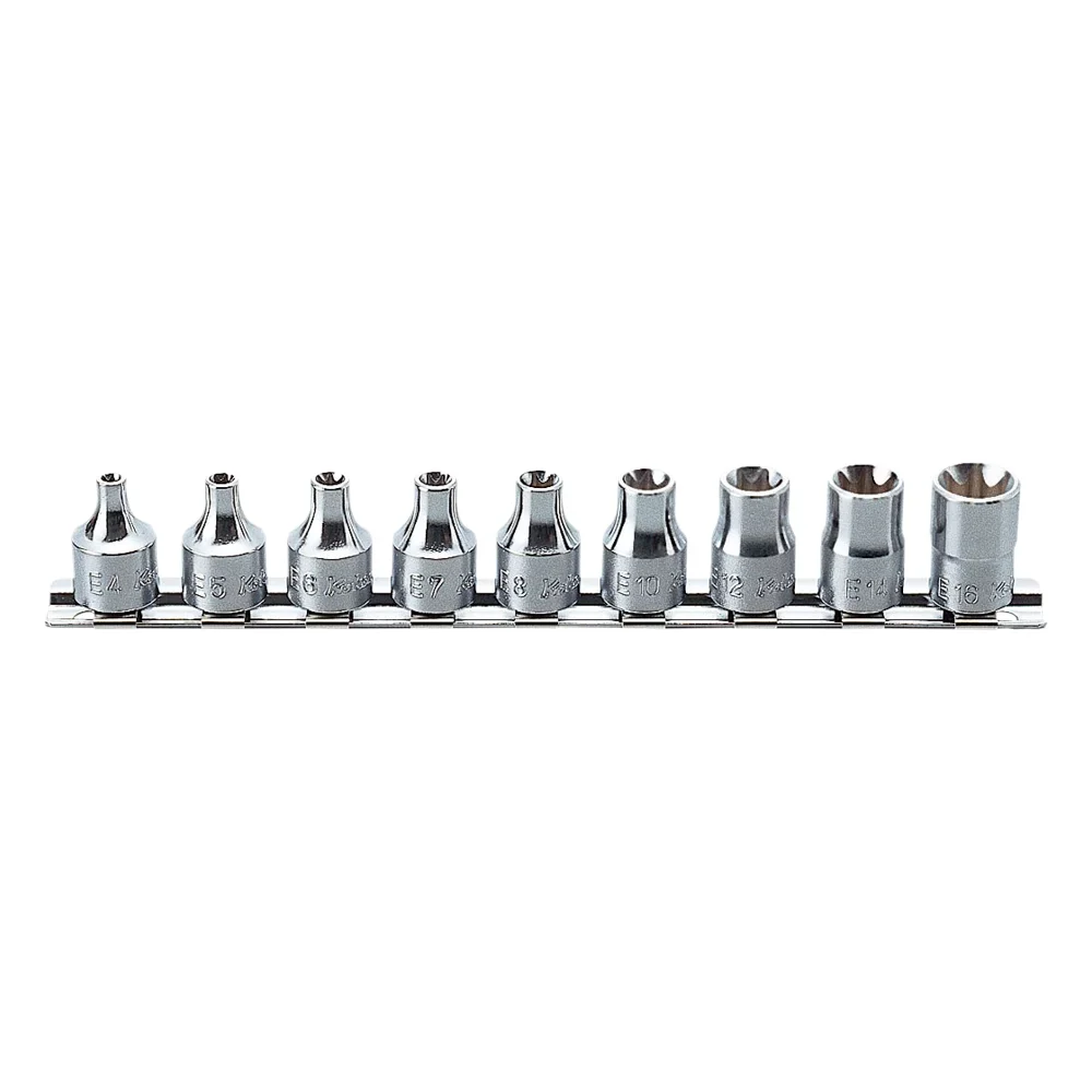 1/4" 12 kant gelenk einsätze (zoll), 9teiliger satz auf halteschiene
