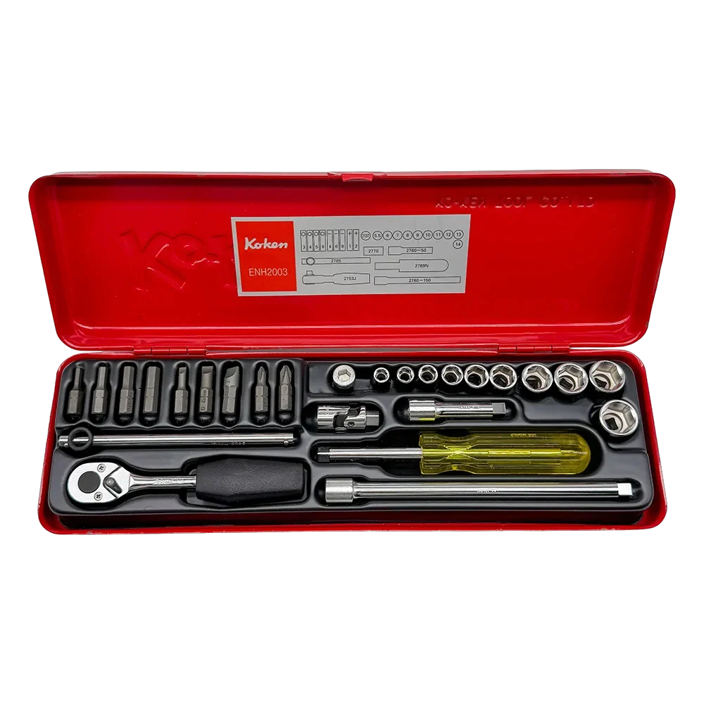 1/4” Ratschen-Satz von Ko-ken mit umfangreichem Zubehör und einer Auswahl an diverse Nüssen und Bitaufsätze. Eine detaillierte Übersicht über die enthaltenen Nüsse und Zubehörteile finden Sie im Produktbild sowie in der Tabelle.