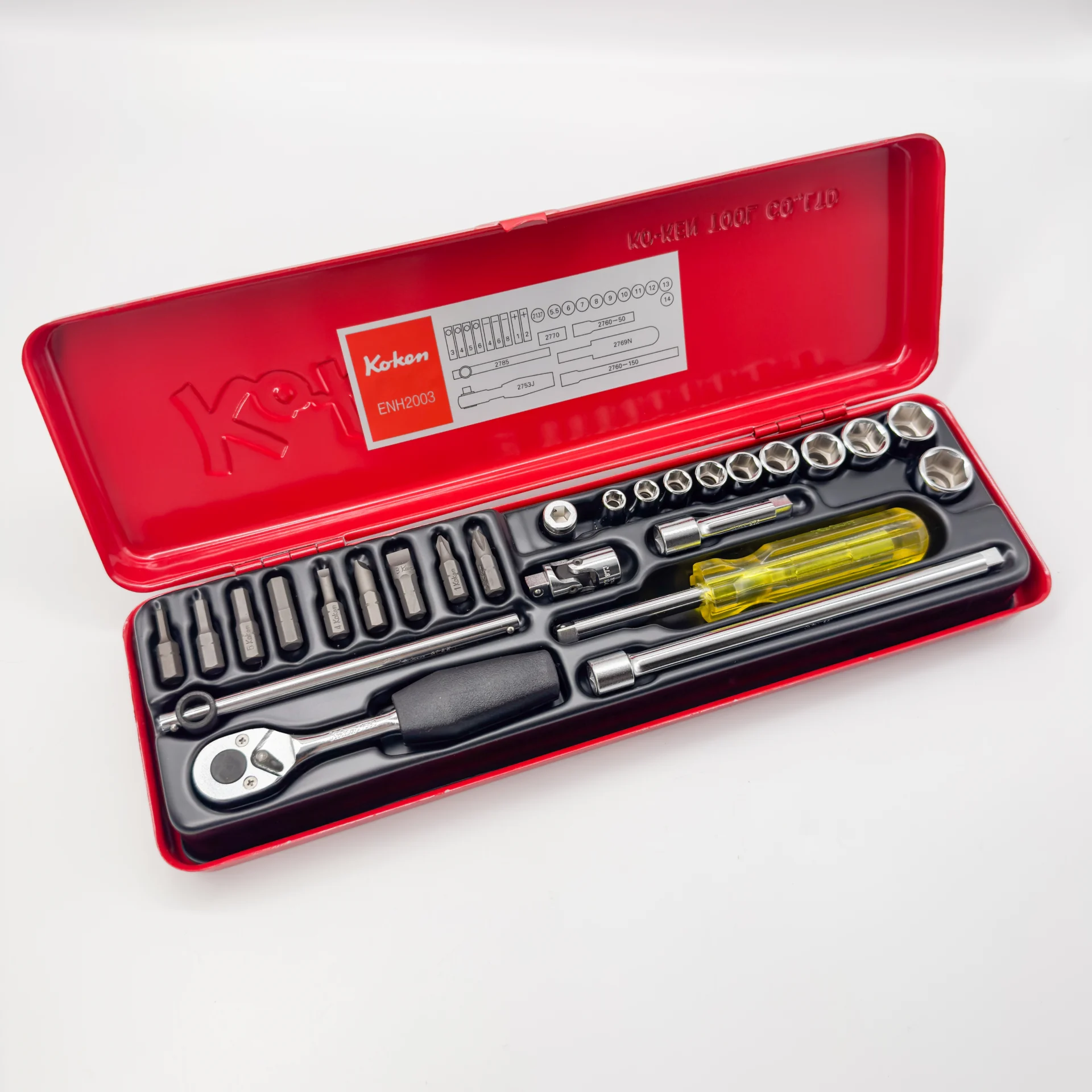 1/4'' Ratschen-Satz von Ko-ken mit umfangreichem Zubehör und einer Auswahl an diverse Nüssen und Bitaufsätze.