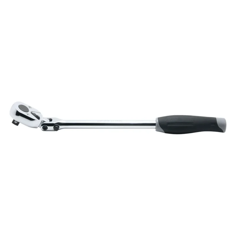Gelenk-Knarre mit feststellbarem Gelenk in J-Typ-Ausführung bietet flexible Einsatzmöglichkeiten und hohe Kontrolle beim Arbeiten. Das Gelenk lässt sich in der gewünschten Position arretieren und ermöglicht so präzises Anziehen oder Lösen von Schrauben auch in engen Arbeitsbereichen.