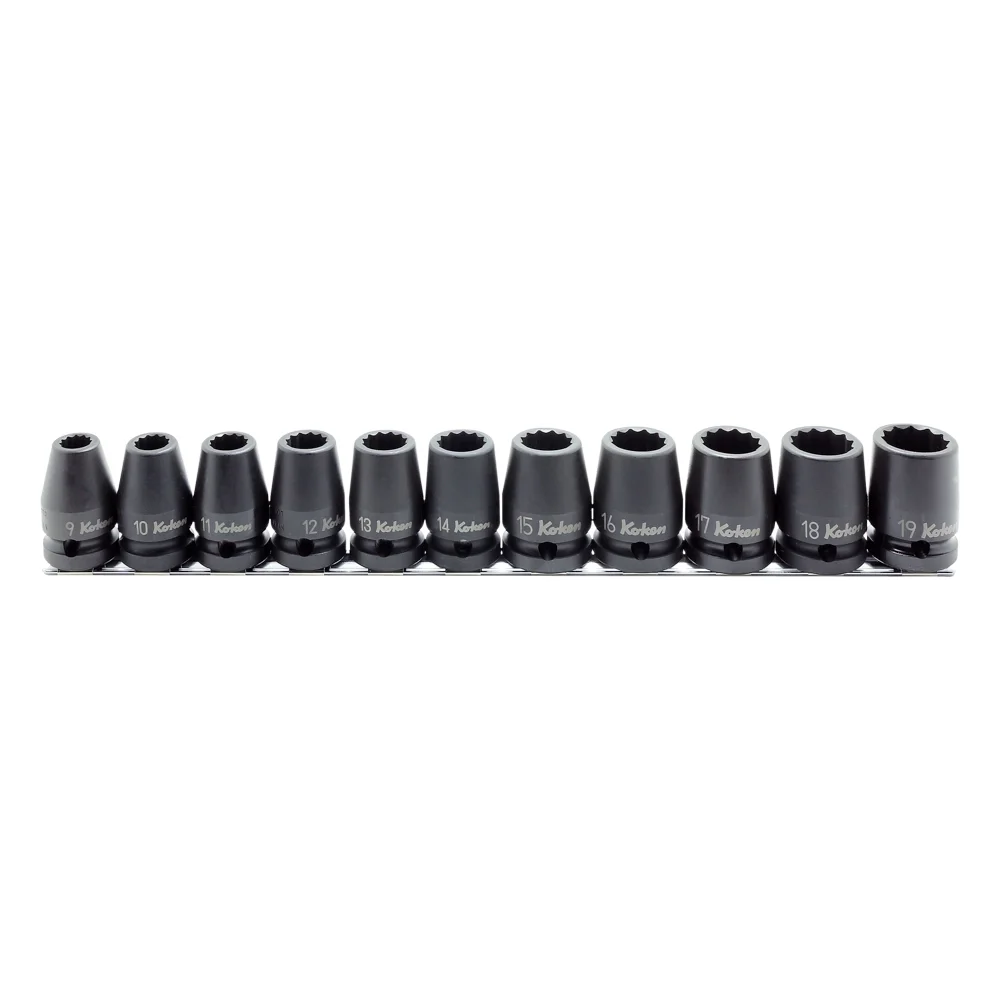 1/2” 12-kant Schlagschrauber Nusssatz, 11-teiliger Satz auf Halteschiene