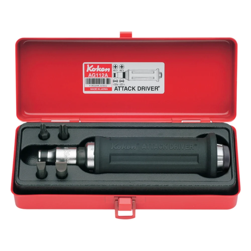 Der Handschlagschrauber von Ko-ken erzeugt durch Hammerschläge ein starkes Drehmoment. Gleichzeitig wird der Bit durch den Schlag in die Schraube gedrückt und verankert sich sicher – ideal zum Lösen festsitzender oder verrosteter Schrauben.