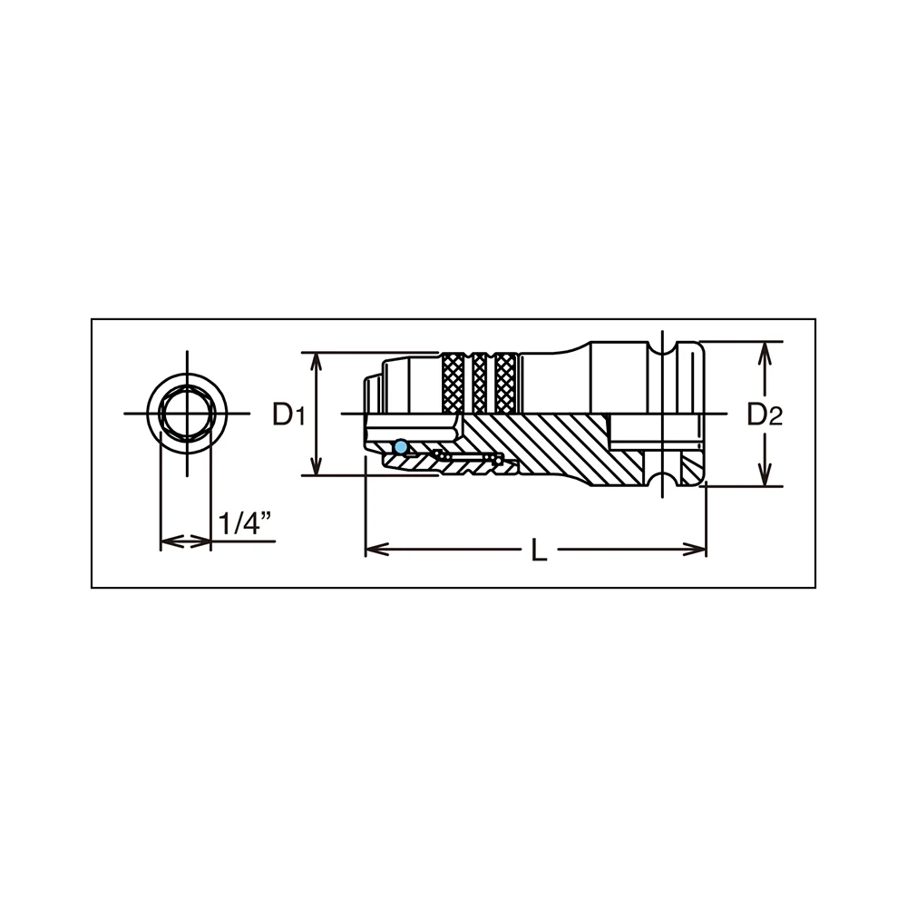 Bithalter für Schlagschrauber. Sorgt für sicheren Halt von Bits und zuverlässige Kraftübertragung beim Schrauben. Das gleitende Teil während der Bewegung nicht festhalten, um Überhitzung durch Reibung und vorzeitigen Verschleiss zu vermeiden.