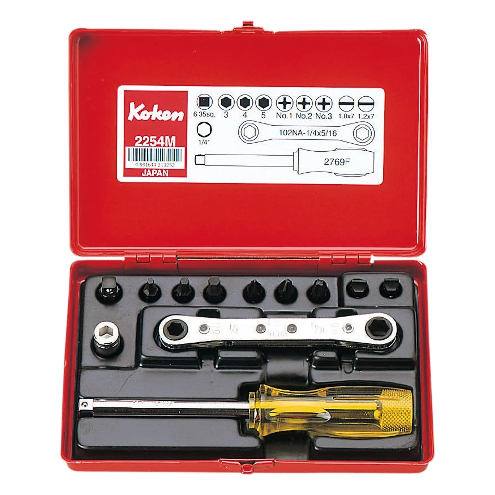 Der Knarren-Ringschlüssel Satz enthält verschiedene Bits, alle Details zu Grössen und Varianten sind in der Tabelle aufgeführt.