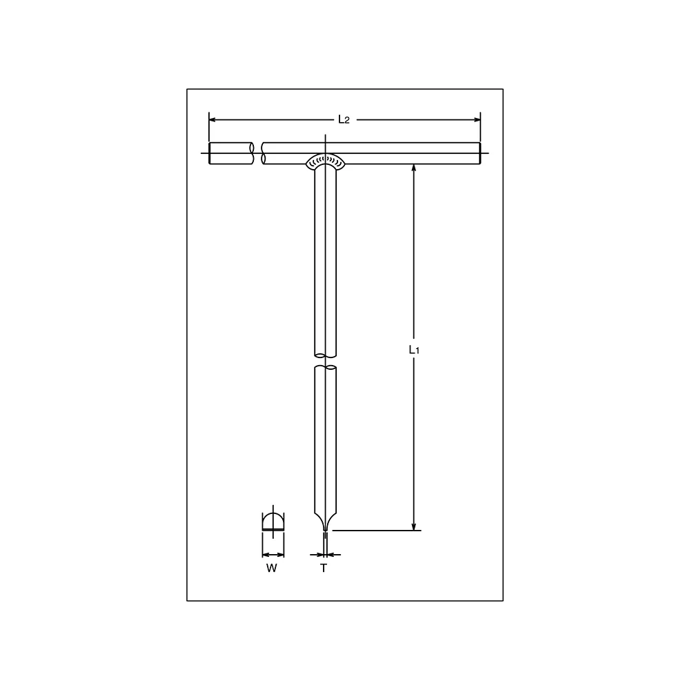 Dieser T-Griff ist mit einem festen Schlitz-Antrieb ausgestattet und ermöglicht präzises Arbeiten an Schlitzschrauben. Die robuste Konstruktion gewährleistet eine zuverlässige Kraftübertragung, während der ergonomisch geformte Griff sicheren Halt und komfortable Handhabung bietet.
